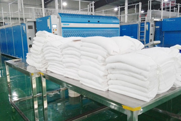 | 引進德國進口簡森全自動化洗滌生產線,實現紡織品分揀、洗滌、脫水、烘干、燙平、折疊、傳輸自動化,節水、節能、節省用工。 |